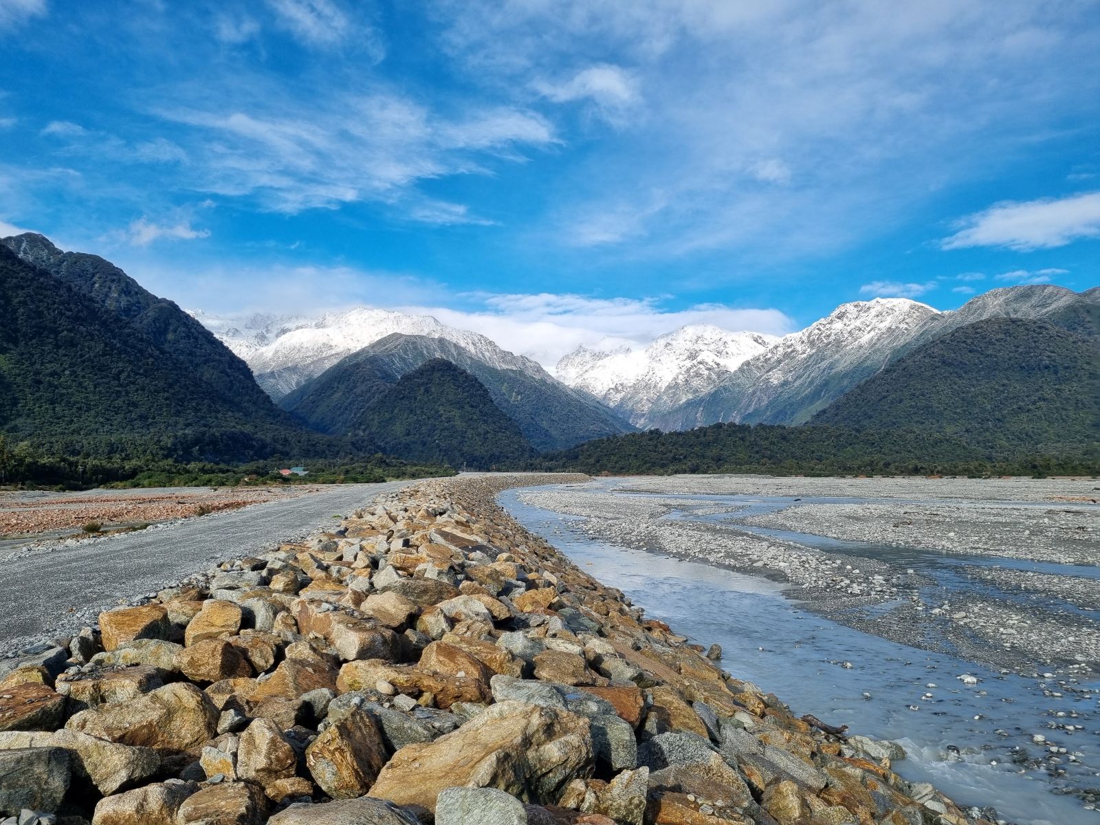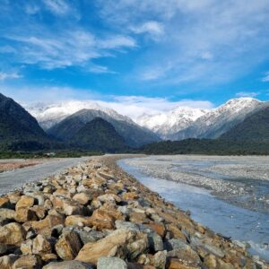 This contract involved upgrading 2.26 kilometres of the northern stopbank, including constructing a new, 900-metre section along the Waiho River’s true right bank. These works involved raising the existing stopbank height by approximately two metres and constructing a completely new stopbank, built five metres above the existing riverbed, providing robust protection against a 1% Annual Exceedance Probability (AEP) flood event.